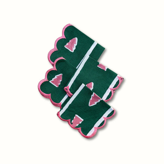 Holiday Tree Embroidered Cocktail Napkin - Set of 4