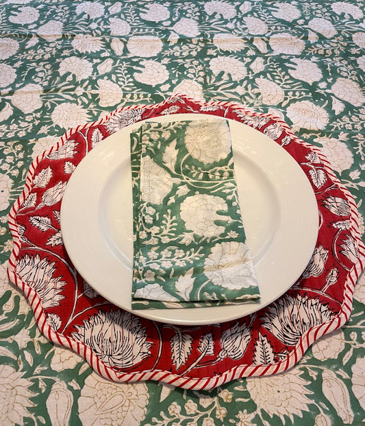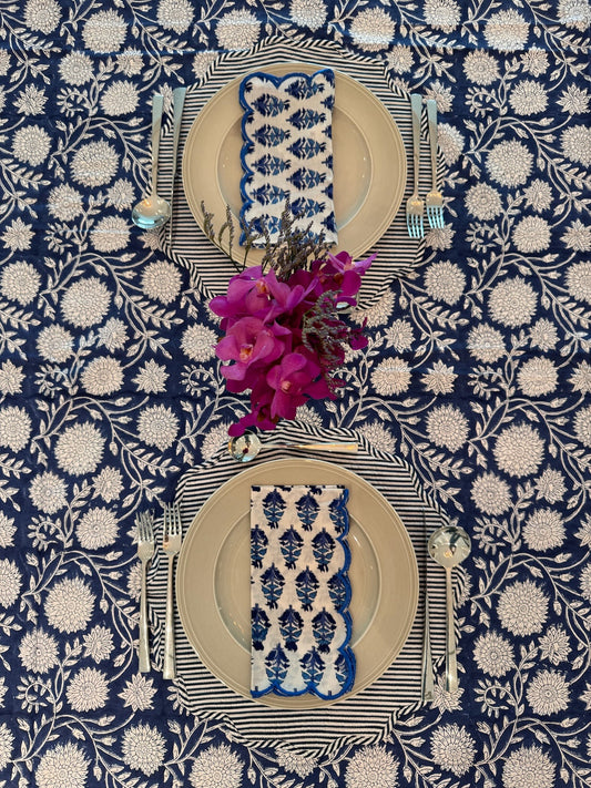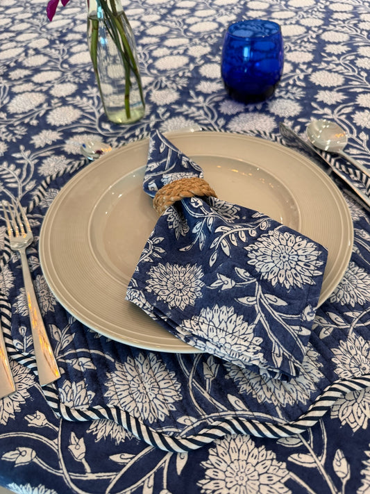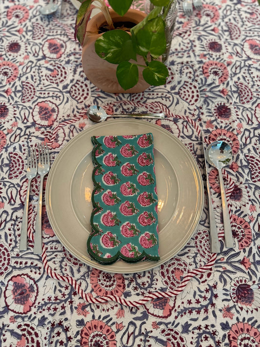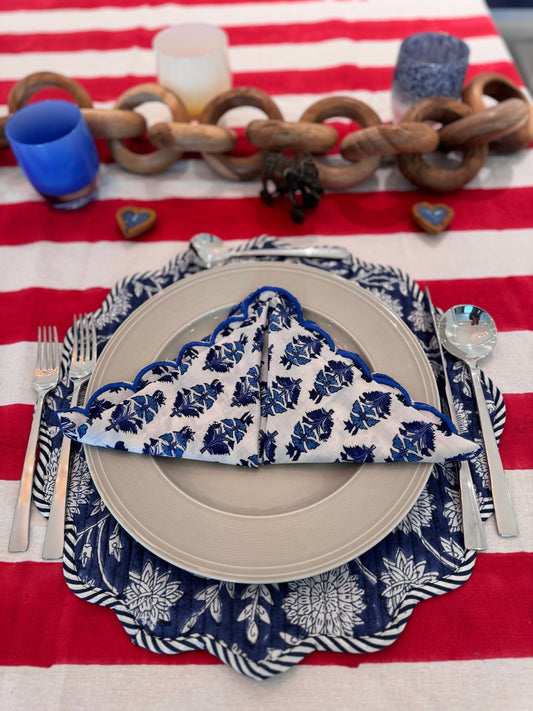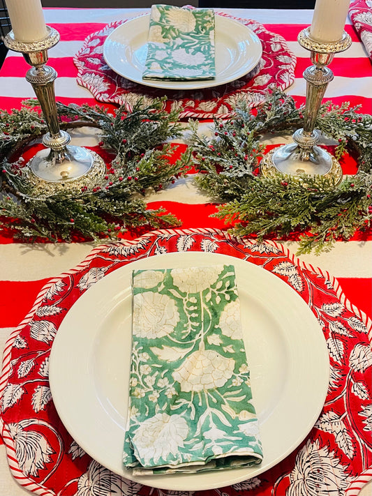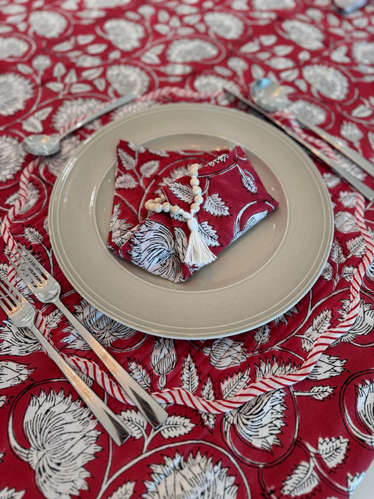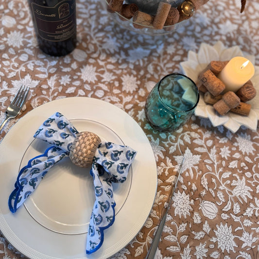 Quincy & Coco Tabletop Collection, where timeless style meets everyday functionality. Designed to bring warmth and elegance to any table setting, our block printed collection includes handcrafted tablecloths, cotton cloth napkins, and stylish placemats—all made with high-quality cotton that balance beauty and durability.