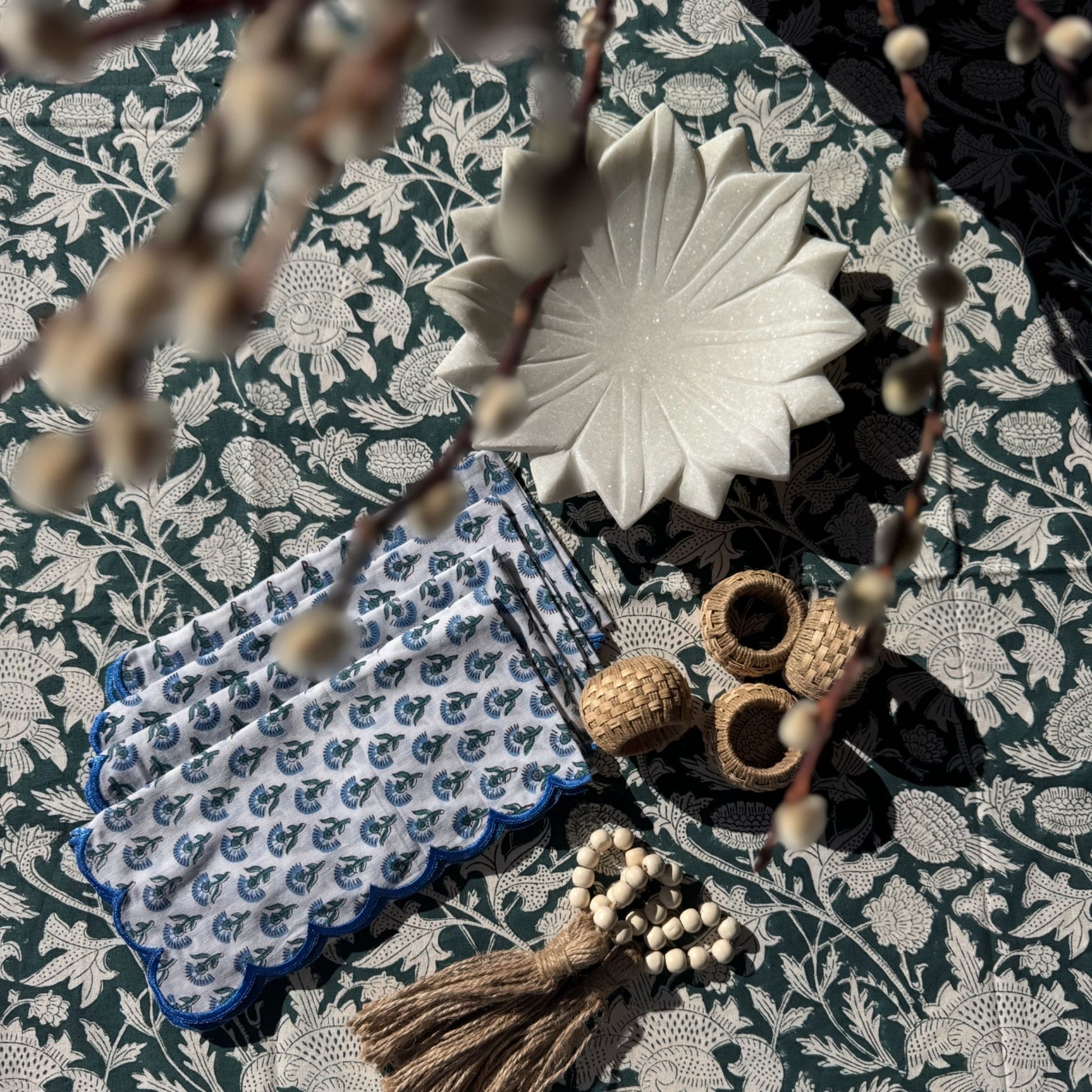Every piece is one-of-a-kind, showcasing the subtle variations that make block-printed textiles so special. Layer it with coordinating napkins or mix patterns for a look that’s elevated, joyful, and uniquely yours.