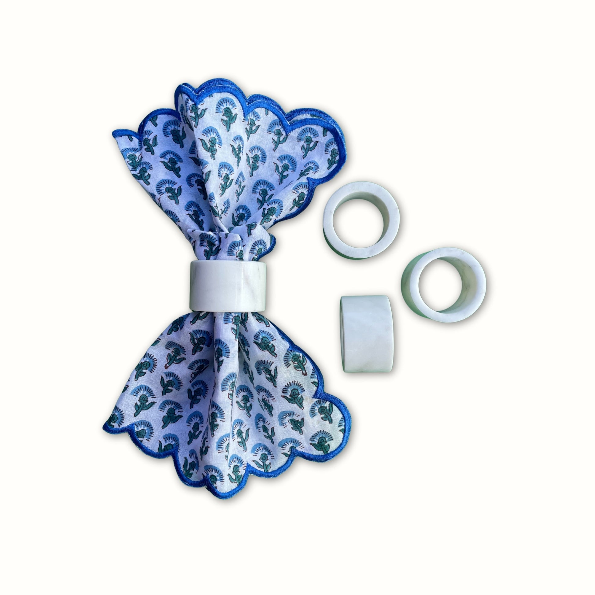 Each round marble napkin ring is carved by artisans in India and made out of Banswara Marble. Banswara marble originates from the Banswara region of Rajasthan and is known for its pristine white color, durability, and unique veining patterns.