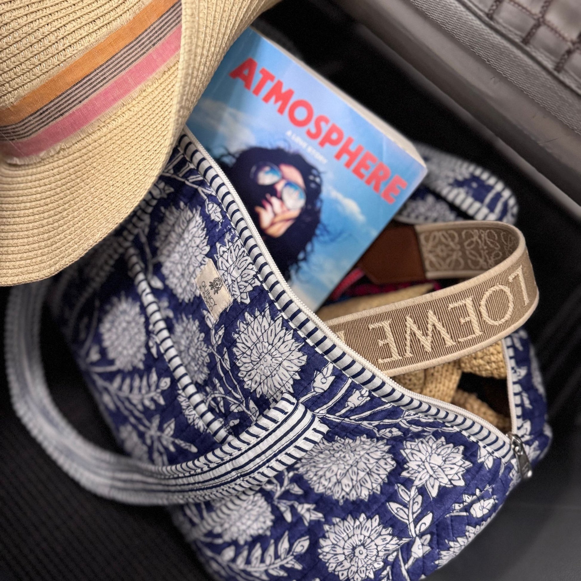 Our quilted duffel bags are bright, bold and fun! Handmade in India, these weekender duffels are made of meticulously hand block-printed Indian cotton.